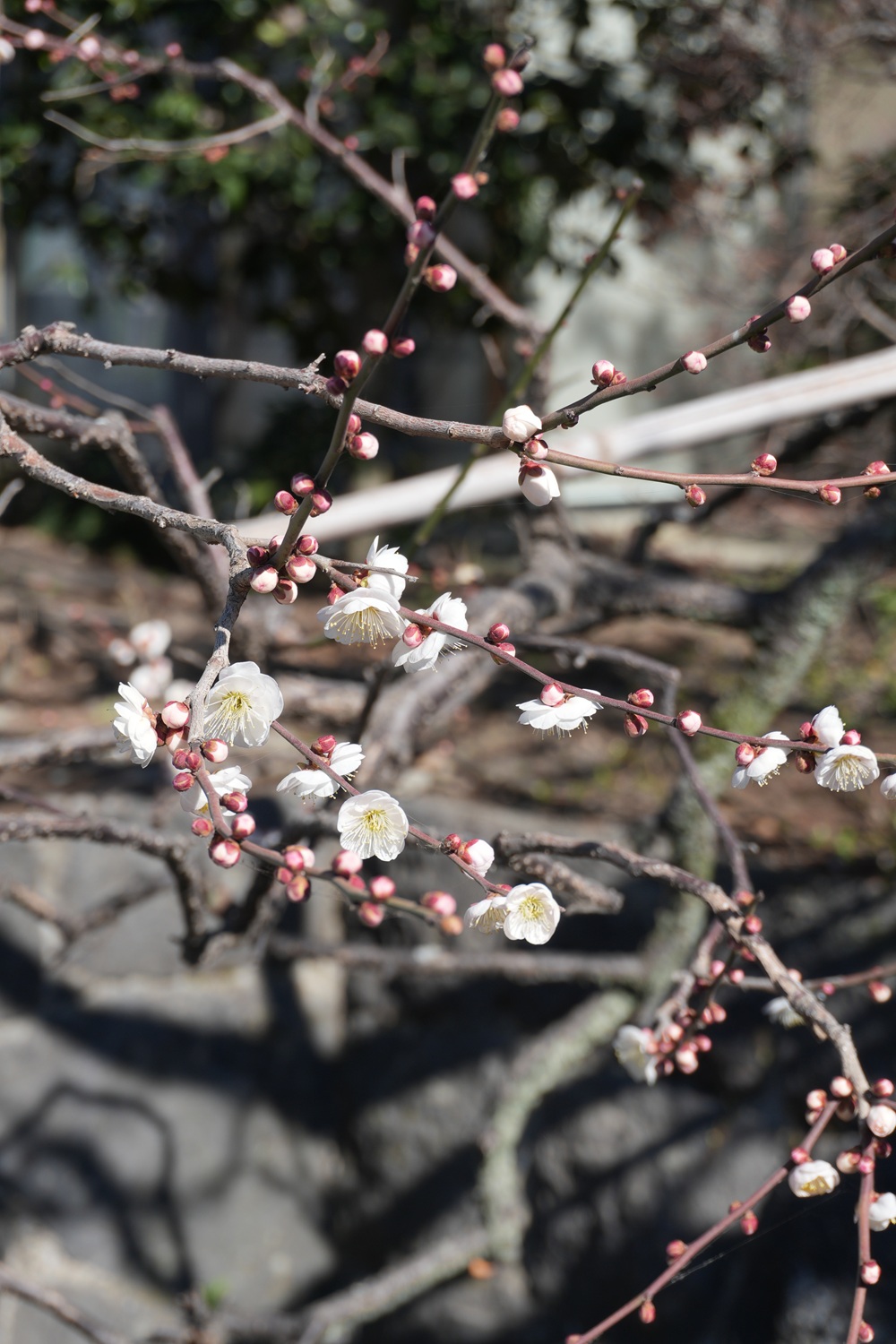 梅「思いのまま」は、1本に4色(紅・白・絞り・淡紅)の花を咲き分けます。